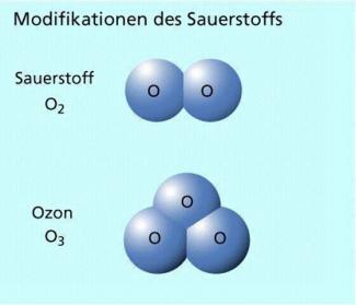Disauerstoff und Trisauerstoff (Ozon) sind Modifikationen des gleichen Elements.
