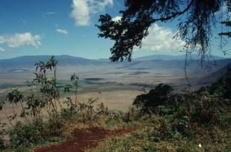 Blick vom südlichen Kraterrand des Ngorongoro auf die 600 m tiefer liegende Kratersohle