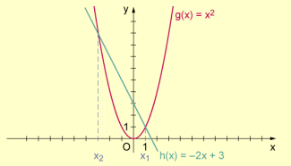 Aus folgt , d.h., der Funktionsterm von f ist auf diese Art und Weise geschickt in zwei Terme zerlegt worden, die wiederum Funktionen darstellen und deren Graphen man besonders einfach zeichnen kann (Normalparabel und Gerade). Die x-Koordinaten der Schnittpunkte der Graphen sind die Nullstellen der Ausgangsfunktion, denn nach den vorgenommenen Veränderungen gilt .