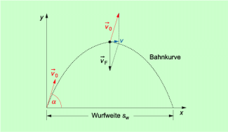 Bei einem schrägen Wurf überlagern sich eine gleichförmige geradlinige Bewegung unter einem Winkel zur Waagerechten und eine gleichmäßig beschleunigte Bewegung - der freie Fall - in senkrechter Richtung. Wurfhöhe und Wurfweite sind abhängig