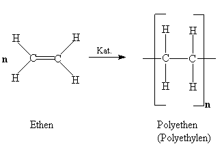 Große Bedeutung in der chemischen Industrie hat die Polymerisation, ebenfalls eine spezielle Form der Additionsreaktion. Sie bildet die Grundlage für die Herstellung vieler Kunststoffe. Beispielsweise können sich Ethenmoleküle durch fortgesetzte Addition zu langen Molekülen vereinigen. Dabei bildet sich Polyethen (Polyethylen).