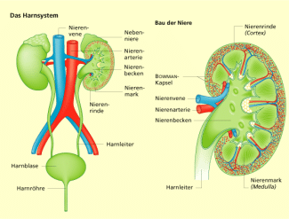 ins Blut entgegenwirken. An dieser Regelung sind Vorgänge beteiligt, die zwischen Blutkapillaren, dem Tubus der henleschen Schleife (Einrichtung der Harnkonzentrierung bei Vögeln und Säugern) und den Zellen des Tubulus ablaufen.