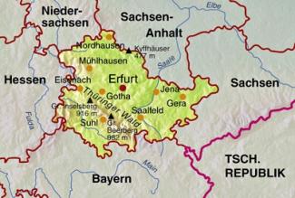 Das Bundesland Thüringen grenzt im Norden an Niedersachsen und Sachsen-Anhalt, im Osten an Sachsen, im Süden an Bayern und im Westen an Hessen (Bild 1). Das Bundesland nimmt eine Fläche von 16172 km² ein und hat 2,25 Mio. Einwohner (2010). Landeshauptstadt ist das zentral gelegene Erfurt.