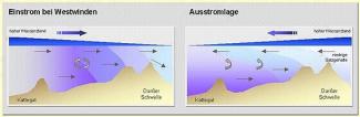 Solche Zustände extremer Sauerstoffverknappung am Boden der Ostsee werden normalerweise durch schubweise in die Ostsee eindringendes, frisches Nordseewasser gemildert. Dieses strömt aufgrund seiner hohen Dichte in die Becken und versorgt sie mit neuem Sauerstoff. Diese sogenannten Salzwassereinbrüche ereignen sich aber nur höchst selten, da das Nordseewasser nämlich einige flache Schwellen im Bereich der dänischen Ostsee und die Darßer Schwelle überwinden muss. Bild 2 zeigt solche typischen Aus- und Einströmsituationen in der Ostsee.