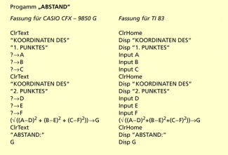 Das Programm „ABSTAND“ berechnet den Abstand zweier Punkte des Raumes bzw. der Ebene.