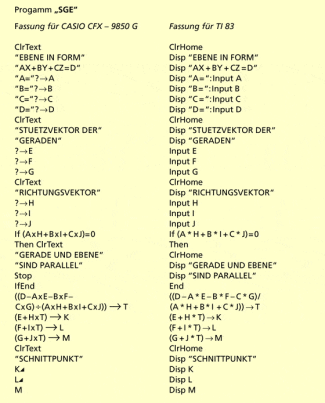 Im Folgenden werden zu verschiedenen Problemen Programmlistings für grafikfähige Taschenrechner zum Nachnutzen angeboten.