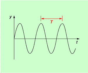 Beschrieben wird mit diesem Diagramm die Bewegung eines Schwingers. Abgelesen werden kann aus dem y-t-Diagramm die Auslenkung (Elongation) y zu verschiedenen Zeiten t. Der Abstand zweier benachbarter Wellenberge ist gleich der Schwingungsdauer (Periodendauer) T des Schwingers.