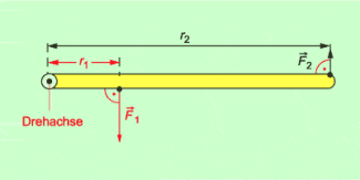 Ein Hebel ist im Gleichgewicht, wenn das links drehende Drehmoment gleich dem rechts drehenden Drehmoment ist.