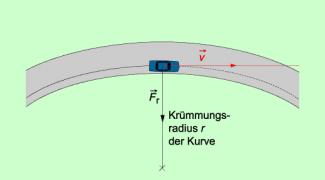 | r | Radius der Kreisbahn (Krümmungsradius der Kurve) |